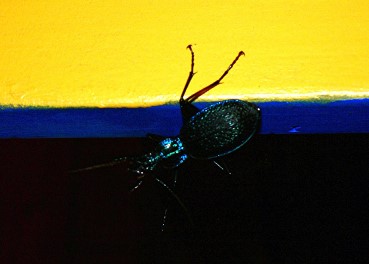 Aussitôt l’arrivée de ce signe manifeste, rutilant et tonitruant d’un Dehors printanier en ma demeure que je croyais bien close fait disparaître toute trace de fatigue, et me voici occupé à pourchasser d’une main l’insecte tout en maintenant à distance la chatte de l’autre main. Le ballet des blattes tropicales, le bruit de bombardier des énormes mouches-rhinocéros qui autrefois s’abattaient sur ma table comme des balles, l’irruption toujours espérée d’un titan de vingt centimètres ou plus, ne me procuraient pas de plus grande excitation que celle qui m’anime à présent lorsque, penché sur le coléoptère à la belle armure bleue, je m’interroge et je l’interroge (carabe, d’accord, mais lequel ?). Je prends en hâte et pour mémoire deux ou trois photographies, avant de le soustraire à la férocité des chats en le renvoyant au dehors.