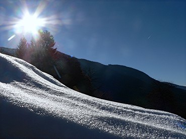 C’est encore aujourd’hui une de ces journées éclatantes qui, depuis plus d’une semaine, se répètent avec la stabilité obsédante d’un été inversé. Accoudé à la fenêtre je hume l’air froid pendant que le soleil passe par-dessus le sapin. Aucun nuage, aucune averse, aucun changement en vue, et s’il reste un peu de fumée qui voile le fond du paysage c’est parce que les paysans brûlent leurs champs. Malgré le soleil et ce relatif redoux (il fait plus chaud en altitude qu’en plaine, ce qui occasionne d’ailleurs de sérieux problèmes de pollution dans les villes), la neige ne fond qu’à peine et dessine sur le toit méconnaissable des courbes inédites qui suivent celles, plus sombres, de la montagne. Seule la comète blanche d’un avion fait un tout petit accroc au ciel bleu.