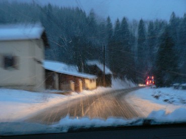 Les enfants courent sur la route mouillée où tremblent à travers le brouillard les premières lueurs de l’aube. L’aïeul à la fenêtre les regarde passer, avec le même air inquiet que le renard tapi à l’orée du bois. Bientôt ce sont eux qui, assis au chaud derrière les grandes vitres, regardent l’aïeul, le parent qui s’éloigne, la forêt enneigée, le renard apeuré, le brouillard, la neige qui tombe à nouveau. Leur hiver enfantin est plein de joie et d’éclats. Ils se réjouissent de la neige et se laissent emporter sans peur sur la route étroite. On voit, dans le rétro-viseur, leur bus qui disparaît au virage et puis, plus rien que la route raide que rayent les flocons.
