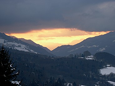 Jours brefs. À cinq heures l’épaisse couche des nuages est encore éraflée par une petite coupure de lumière, que referme bientôt le gris. Certains soirs c’est au contraire un large triangle assez spectaculaire qui flamboie du côté du Vercors – qui flamboie, puis charbonne, puis s’éteint. Le résultat est de toute façon le même : on se retrouve dans le noir, il fait froid, on frissonne.