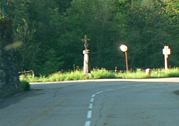 Cette voix dans la voiture résonne comme dans une église (je viens de passer celle d’Arvillard) ou une chapelle (j’approche de La Chapelle du Bard). Grâce à elle la voiture devient vaste comme une église. Je regarde alors avec sympathie ces signes religieux qui balisent la route, comme ce grand crucifix que je viens de laisser sur ma droite juste après La Chapelle du Bard et que je n’avais encore jamais remarqué.