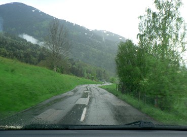 À Arvillard les travaux de refondation, de reconstruction et de réfection vont bon train. On roule jusqu’à la grande grue, on jette un œil aux travaux, un œil aussi à cette maison en face dont on refait le toit, on slalome lentement et puis on se laisse glisser en ligne droite jusqu’à la croix, jusqu’au pylône, jusqu’à l’usine et la frontière, puisque la route relie la Savoie à l’Isère.