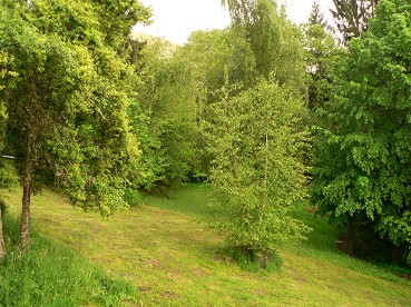 Fin d’après-midi pluvieuse : ciel gris, feuillages très verts. Je retrouve la table de la mezzanine, les toits de la grange, du hangar, du village, le lampadaire éteint. Une cheminée fume encore, qui ajoute encore un peu de gris au ciel.
