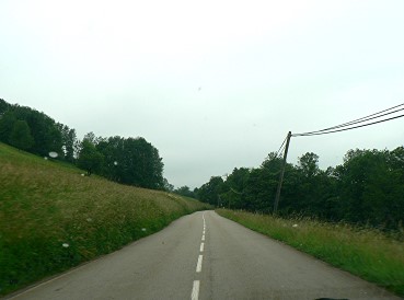 Ciel blanc, jour blanc, montagne barrée, jour déjà raturé. Les sous-bois aussi sont envahis de gerbes de fleurs blanches: ce sont, je crois, des reines des bois (ou barbes de bouc), dont la floraison dure (je l’avais remarqué) jusque début septembre… À cause des fougères on a en tête des images des Highlands qui parfois se superposent à celles de la route.