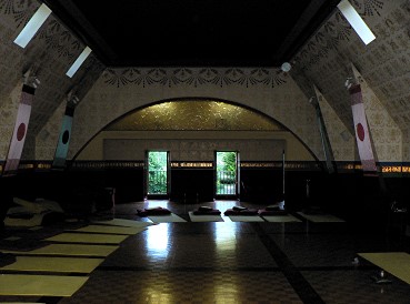 Pratique du matin stable, ma foi. L’air même paraît palpable. Les apparences, les bribes de pensée ne distraient pas. Cet état d’ouverture, de stabilité se maintient pendant toute la récitation. Au dehors, la pluie. On déjeune en silence dans le grand temple aux fenêtres lumineuses.