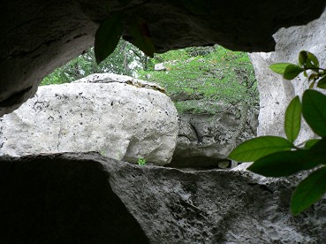 Ensuite je tente de lire dans les rochers, les lichens, les ronces ou le lierre des formes animales, des formes qui me parlent, « déformation » courante chez les amateurs d’art pariétal et qui devait être chez nos proches ancêtres préhistoriques une obsession ordinaire (l’auteur des incroyables mammouths de Rouffignac était un gosse génial connu pour en avoir un dans la tête, je n’en doute pas ; dans la tribu on en avait tellement marre de ses graffitis qu’on l’a, par punition, enfermé un moment dans la grotte – et il a continué !).
