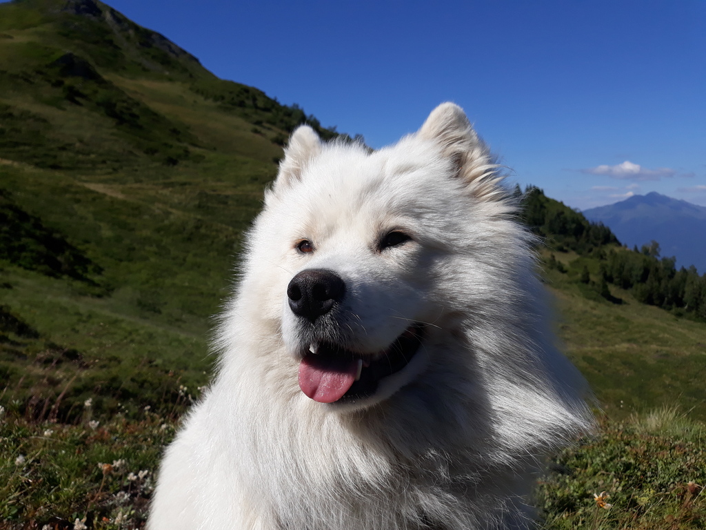 Le vent d’été fait chanter les châtaigniers, frissonner les bouleaux, et soulève par bourrasques la poussière du sentier jonché de noix et de noisettes, de plumes et de baies, de petites pommes et de cônes de pin. On a fait les foins, il y a un chat dans chaque champ. Le tintement des clarines des chèvres fait accélérer Rimski, plus du tout désireux d’aller à leur rencontre depuis l’incident du fil électrique et dédaignant donc leur si touchante curiosité. Quand, sortant du bois, il se retrouve en plein soleil et que le vent fait onduler son long pelage blanc, on dirait une apparition, un animal de féérie sauvage, plutôt qu’un chien domestique.