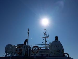 Ce n’est qu’une fois que les amarres sont larguées et que le bateau quitte le quai qu’on se sent vraiment partis. Rien ne peut rendre plus vraie cette sensation d’être en partance, d’être en voyage, qu’une côte qui s’éloigne pendant qu’une autre déjà se rapproche (car la traversée ne dure qu’un peu plus d’une heure), que le radar hérissé d’antennes du bateau perce le soleil, que le bleu sombre répond au bleu ciel et que nos souvenirs comme des fous en pêche ou comme des dauphins plongent dans les remous blancs du sillage en lesquels se sont noyés nos entraves.