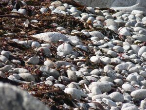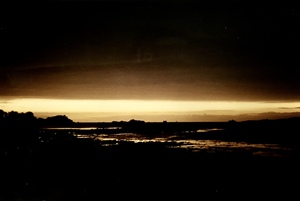 Grève de Ploubaz, 2 mars 1996. Encore quelques pas sur la grève juste avant le départ. Je me lave au vent marin et fais provision d’embruns. Le ciel est chargé de nuages noirs, avec vers l’est une belle trouée rose qui se déchire. Les goélands gris crient comme des poulies mal graissées. Le vacarme sur la plage est terrible. Je jette aux goélands un reste de pain rassis et m’assois encore sur un rocher, puis je pars marcher sur la vase. Le ciel finit par se dégager, ce sera une belle journée encore sur la côte bretonne. Je sais que je ne reviendrai pas ici avant longtemps (en fait, en septembre 1997 avec Nathalie). Je sais que ce voyage était le dernier d’une belle série. Avant, je partais toujours avec la perspective d’un retour rapide. Maintenant, il faut passer à autre chose. J’ai le cœur confiant, l’avenir ne me fait pas peur. Ni le travail, ni surtout la solitude.