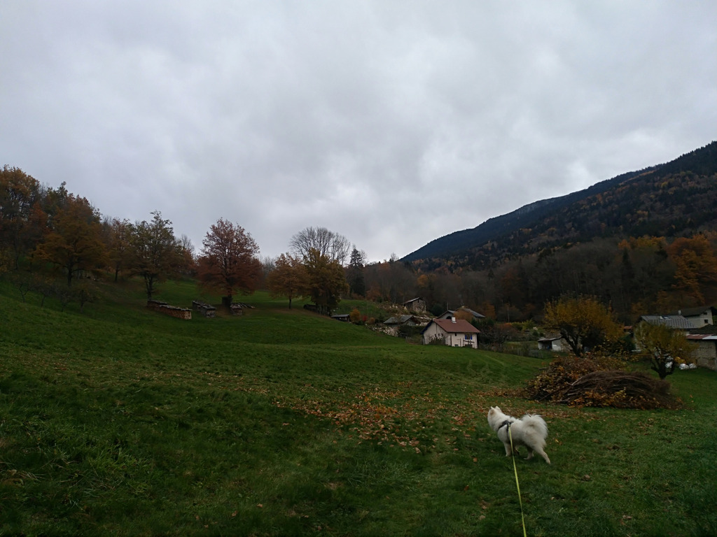 Le torrent m’interrompt, qui gronde ici très fort. L’hiver du ciel se densifie, la forêt se rétracte. Des hommes coupent du bois et leur cognée répète : « il faut se dépêcher ». Mon chien alors escalade le talus, et se met à aboyer furieusement on dirait après le grand ciel blanc, puis redescend en ramenant avec lui une forte odeur de feuilles. Une brise froide siffle imperceptiblement sur le grand champ encore vert cerné par les montagnes.