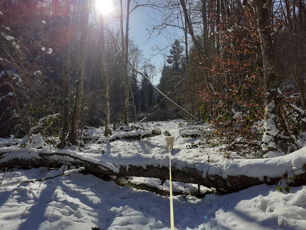 (Rimski, cependant, dans l’euphorie de la débâcle, retrouve sous le pont la mâchoire de cerf égarée l’an passé. C’est peu dire que ce jour est pour lui jour heureux. On revient triomphants, lui avec son os, moi avec mon texte.)