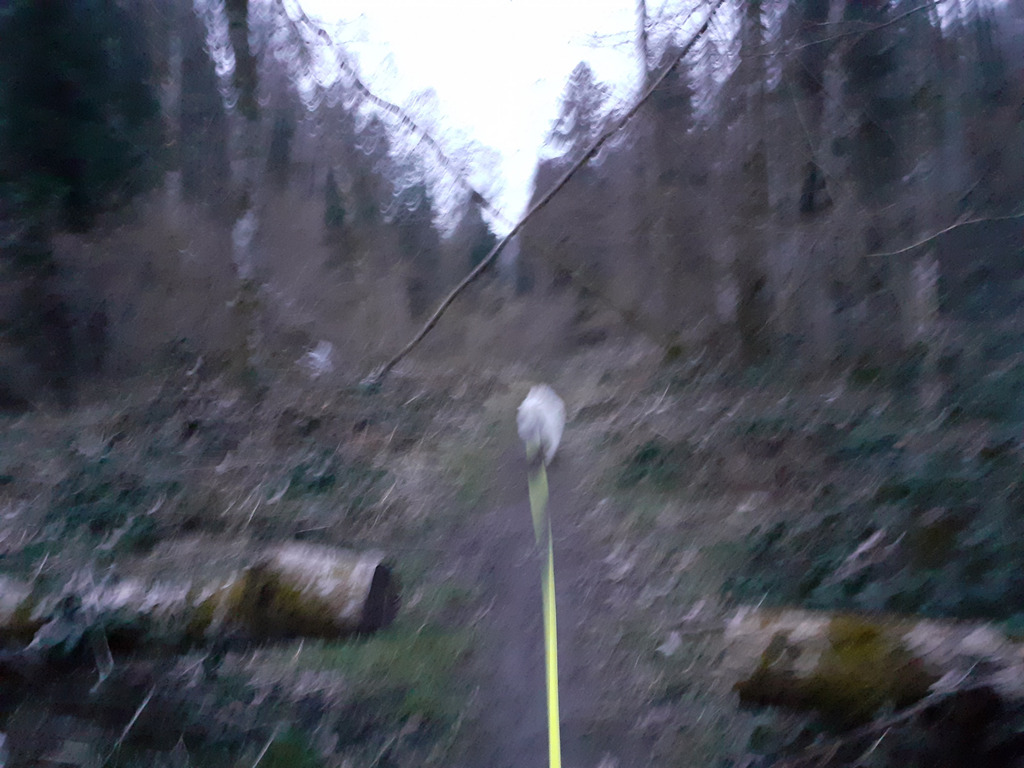 Puis l’heure et le temps tournent et le soir retombe. Le ciel trop bleu a fini par virer au gris et l’on sent revenir la possibilité d’une averse. En contrebas du chemin boueux retentit le vacarme d’une tronçonneuse, la même qu’hier, et l’on entend encore le fracas d’un arbre qui tombe. Une plaque de glace craque sous le pas. Les perce-neiges dans la pénombre tracent aux emplacements des anciens névés des cercles livides. Rimski hâte le pas, le museau au sol – une poignée de friandises m’assure sur cette pente particulièrement raide sa docilité. Dans le fond de la combe c’est encore l’hiver que souffle au visage le bien nommé Gelon. Et puis, passée la croix des deux arbres, on se détend. C’est la paix du soir, les oiseaux ne semblent plus chanter que par plaisir ou dans l’attente d’un événement heureux, sans souci d’un territoire à défendre ou d’une femelle à conquérir. C’est l’heure où l’on se dit qu’il est trop tard pour continuer certaines tâches ingrates qu’on aurait eu scrupule à interrompre plus tôt dans la journée, et où l’on se sent donc libre, libre de flâner les deux mains dans les poches sans autre tension que celle de la longe. L’air se radoucit à mesure qu’on remonte vers La Martinette. Juchée au sommet d’un épicéa, une grive musicienne lance un chant que j’ai envie d’appeler « chant de pluie », car au même instant quelques gouttes d’eau commencent à crépiter sur les feuilles desséchées.