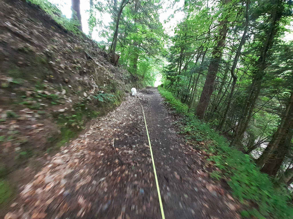 S’il rechignait aujourd’hui à venir, ce n’était pas par jeu, ni parce qu’il est trop intelligent pour obéir, et cette façon de bâcler notre tour n’était pas non plus orientée par quelque quête mystérieuse. Il a chaud, voilà tout, mon Samoyède en été, et n’a pas du tout apprécié que, pour des questions d’emploi du temps, j’avance d’une heure sa sortie en le tirant du rêve en lequel il s’est déjà replongé…