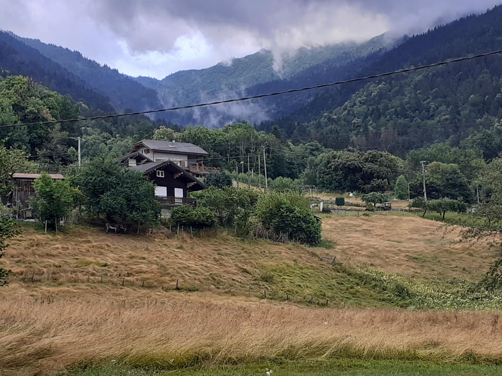 J’évite cette fois le chemin du bas pour ne pas me retrouver au beau milieu du camp scout, mais c’est encore raté : sur le site de la centrale, une bonne cinquantaine de garçons sont rassemblés, torses nus, pour la gymnastique du matin. Il y a aussi un prêtre en robe noire, image d’un autre temps… Comme je passe aussi discrètement que possible, tous les garçons se mettent à courir devant nous, pour le plus grand bonheur de Rimski qui n’en revient pas, qui fait des bonds sur place, qui frappe le sol avec ses pattes avant pour clamer son envie de jouer et de courir lui aussi, provoquant les rires des garçons qui, cent mètres après, s’arrêtent pour faire des exercices, tractions, étirements. Je bifurque et retrouve mon chemin solitaire, tout boueux. Je ne sais trop que penser de cela. Enfant, adolescent, je n’aurais pas supporté d’être dans un tel groupe (ni dans aucun autre d’ailleurs…), avec le virilisme qui s’en dégage, cet arrière-plan idéologique teinté de christianisme et de survivalisme quasi guerrier ; mais je ne connais rien au scoutisme, ce ne sont peut-être que des préjugés, et je ne peux qu’apprécier la courtoisie et le sens du collectif qui animent ces jeunes gens, qui vivent sans doute ici des expériences fortes. À choisir, je trouve qu’il est préférable de courir dans les bois sous la pluie à sept heures plutôt que de dormir dans une chambre jusqu’à dix heures après avoir passé la nuit devant un écran…