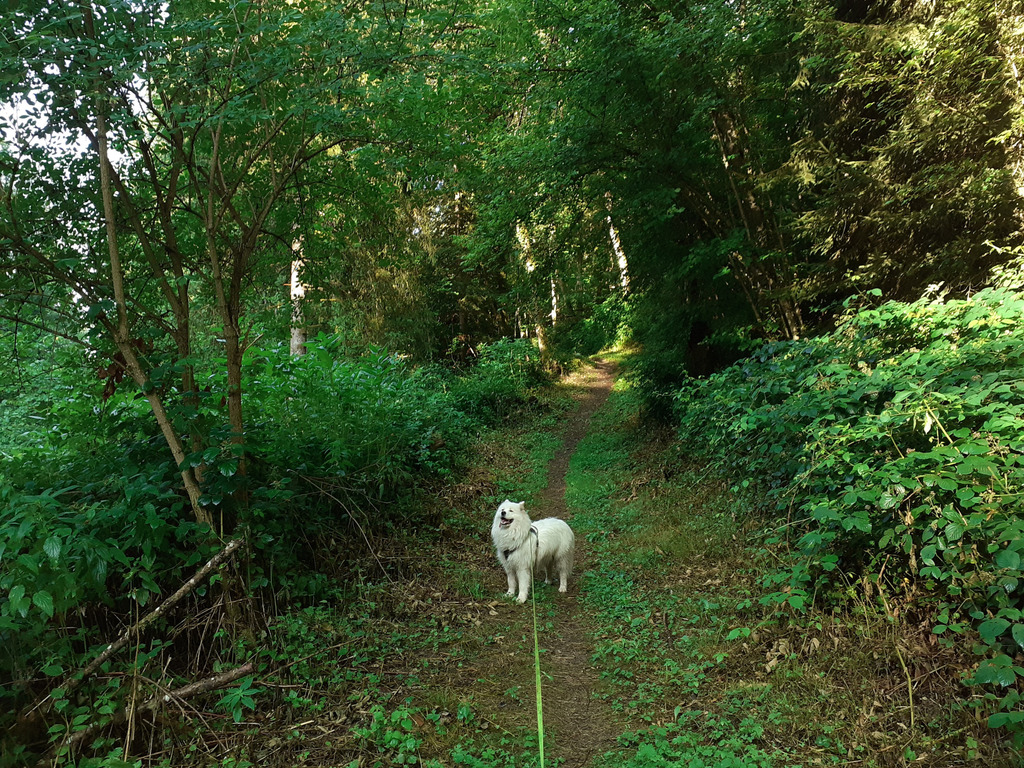 On redescend à petit trot le sentier jonché de noisettes sous un ciel sans nuage que le pic traverse en riant. Un chevreuil fourrage bruyamment dans les feuilles du sous-bois et provoque la première course de Rimski. Avec le temps, je me suis fait à l’idée qu’il serait impossible de partir en promenade avec lui sans le cordon ombilical de cette longe de dix mètres attachée à ma taille qui me permet de l’empêcher de courir après les chevreuils ou les cyclistes, faute d’avoir pu mettre en place un rappel fiable que je continue néanmoins à travailler ponctuellement, mais sur lequel je ne fais aucune illusion : Rimski revient souvent quand je le rappelle, il n’a aucune raison de dédaigner une caresse ou une friandise, mais je passe au second plan si quelque attrait supérieur se présente sous la forme d’un chevreuil, d’une martre, d’un chat, d’un merle, d’un écureuil, d’un congénère…