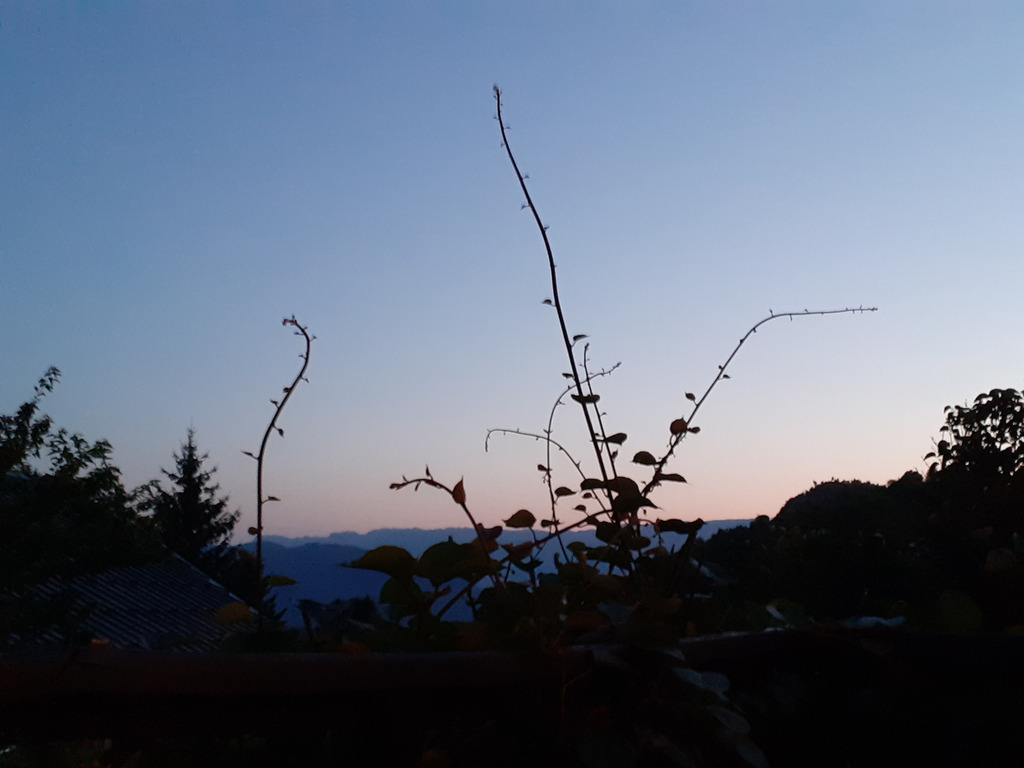 Depuis ma terrasse du Villard, je sais bien que je suis comme dans une cabine de première classe à bord du Titanic. Ici en montagne, la chaleur reste très supportable et ne résiste pas à la tombée du soir. Le socle de ma maison n’est pas argileux, mes murs devraient tenir (vu tantôt la carte des régions où les constructions sont menacées), nous sommes loin de la mer et des fleuves, à l’abri de la submersion ; le massif de Belledonne semble peu concerné par les incendies, moins fragile que la Chartreuse ou les Bauges, plus humide ; il y a bien la catastrophe nucléaire, qui n’épargnerait personne en France, mais dans l’ensemble on peut considérer qu’on est ici parmi les mieux protégés (pas d’émeutes non plus, et de l’entraide plutôt entre les gens – même s’il y a comme partout des vols de fruits et de matériel agricole). Qui cependant peut se croire sérieusement à l’abri, embarqués que nous sommes dans cette folie ?