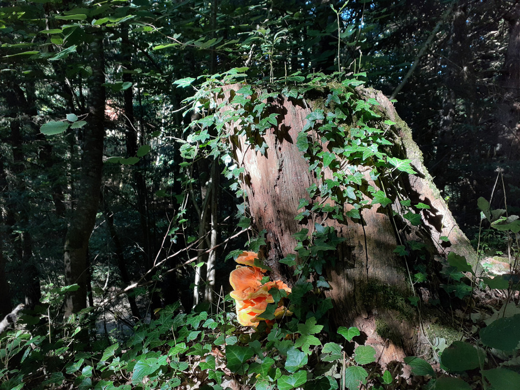 Ce que me disent aujourd’hui les vaches qui paissent dans le pré au-dessus de La Martinette là où hier les chevreuils dormaient, ce que me dit cette image d’un champignon orangé sur la souche éclairée par les premiers rayons du matin à l’issue d’une nuit tranquille, ce que me dit cette branche qui oscille au tournant comme mue par une main invisible, ce que me dit la course de Rimski revigoré par l’air de nouveau frais, ce que me redit encore en insistant la mélopée de la tourterelle, ce qui fuse partout entre les arbres dont le vert a terni subtilement en une semaine à peine, ce que suggère quand même le ciel limpide déserté par les martinets mais traversé d’hirondelles, ce qui tremble au bout du sentier trempé, malgré la grande angoisse des guerres qui accélèrent encore la fin du monde qu’on a connu, ce qui s’affirme non sous ma plume mais sous mon pas et à chaque pas plus clairement, parce que les noix entourées de leur gangue vert clair presque jaune prennent bien la lumière, ce que je sens au bout de mes doigts qui viennent de se saisir du premier rosé de l’année dont le parfum promet un festin pour midi, ce que je perçois par tous les pores de ma peau en ce septième jour d’août qui est une frontière, c’est la perspective atteignable d’un automne heureux.