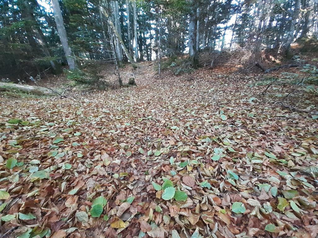 Ah, le bon vent sur ce sommet de la crête avec vue plongeante sur la Maurienne ! Ici le soleil n’est pas filtré par les arbres et tout a brûlé. Je m’avise soudain que ce tapis de feuilles sous les hêtres qui faisait mon bonheur n’est pas normal : il y en a trop pour un 3 septembre, et surtout trop de feuilles vertes (d’un vert triste). Il n’y a en revanche toujours aucun champignon, pas une trompette, pas une girolle, pas un cèpe, ni aucun autre champignon. Peut-être nos cueillettes ne seront-elles bientôt plus qu’un souvenir du monde d’avant.