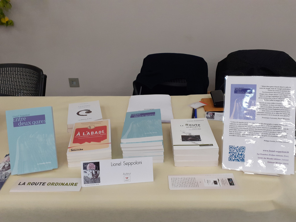 Voici l’endroit, d’ailleurs, pris dans le brouillard ce matin, sans plus de salamandre. Je redescends vers la Maurienne pour retourner à Hermillon, deuxième jour de salon. Je ne sais pas bien pourquoi je fais cela, pourquoi je m’obstine à écrire publiquement alors qu’il y a trop de livres, trop de films, trop de mots et d’images, et qu’aussi indispensable puissé-je juger mes propres mots et mes propres images, tout cela est noyé dans une marée d’insignifiance, de bavardage, de confusion, de distractions secondaires. Je continue quand même, peaufinant mes phrases, la ponctuation, les détails, ce sont tous ces détails qui transforment un brouillon en livre, et sans ce travail même Céline, même Proust, même Bouvier à la relecture déçoivent (comme m’ont fort déçu les inédits de Céline, les volumes non repris de La recherche qui multiplient les redites ou les carnets posthumes de Nicolas Bouvier).
