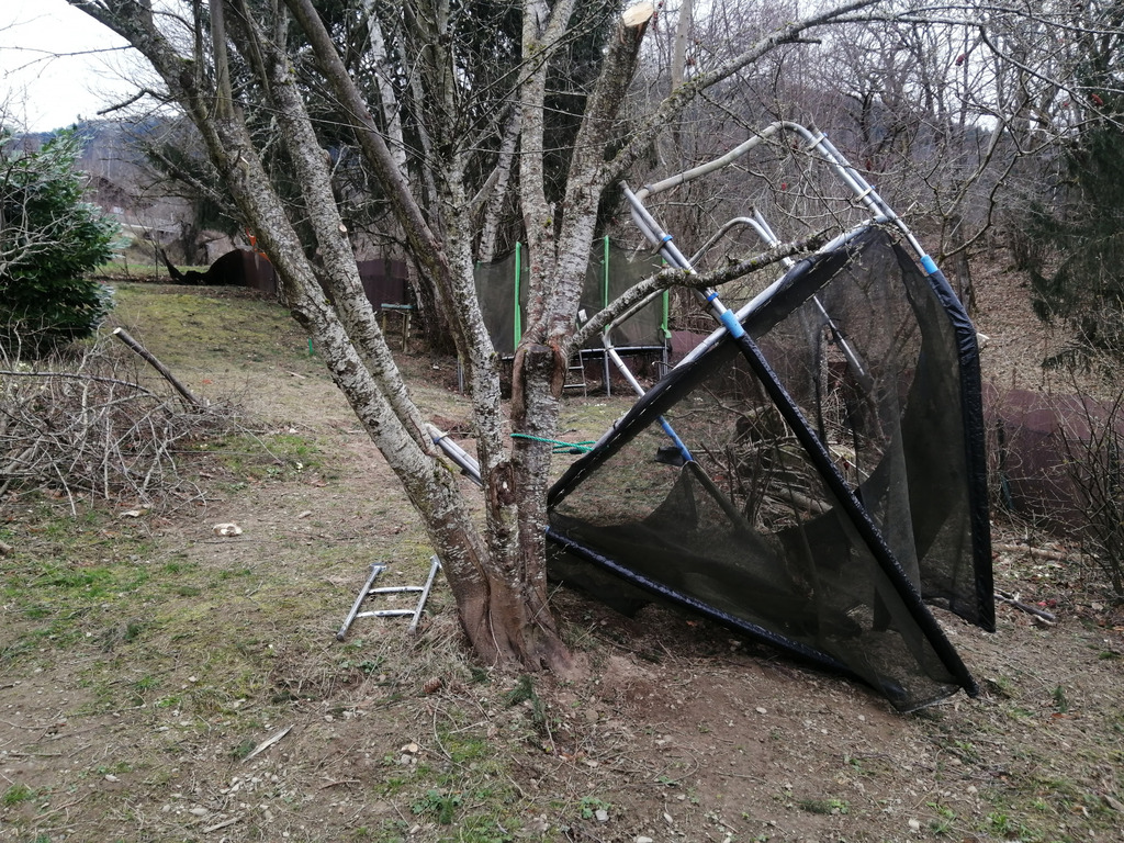 Le vent violent d’avril qui toujours tourbillonne au printemps dans la vallée vient plus tôt cette année et balaye dans le jardin les derniers souvenirs de l’enfance, faisant du vieux trampoline un obus qui, percutant le présent, rappelle que l’enfance est finie, que l’enfant est parti.