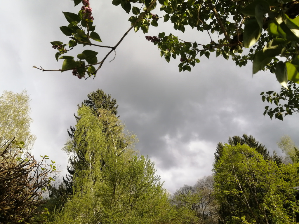 Une mer menaçante roule au-dessus de nos têtes. Un morceau de toile accrochée à un fil claque comme un hauban. Les jeunes feuilles des bouleaux, les hautes herbes tremblent, le pelage des chiens ondule au vent. Comme les herbes ont poussé ! me dis-je en constatant que Nouchka dans le champ est à moitié cachée. Quand le vent tombe on sent à nouveau la tiédeur des jours passés que la neige va bientôt emporter, brûlant les pousses, mettant une fois encore en péril la fructification, mais qui reviendra ensuite et triomphera. Une petite lumière brille à la fenêtre de la maison bleue cernée par de grands nuages anthracite. Tête baissée on pénètre dans la forêt sombre en suivant les lampes des deux chiens. Qu’est-ce qu’ils ont d’ailleurs, ces deux chiens, à courir comme ils font sur le sentier, tellement pressés d’attraper, quoi, le chevreuil du temps, l’orage à venir, la cataracte du futur qui mugit en contrebas ?