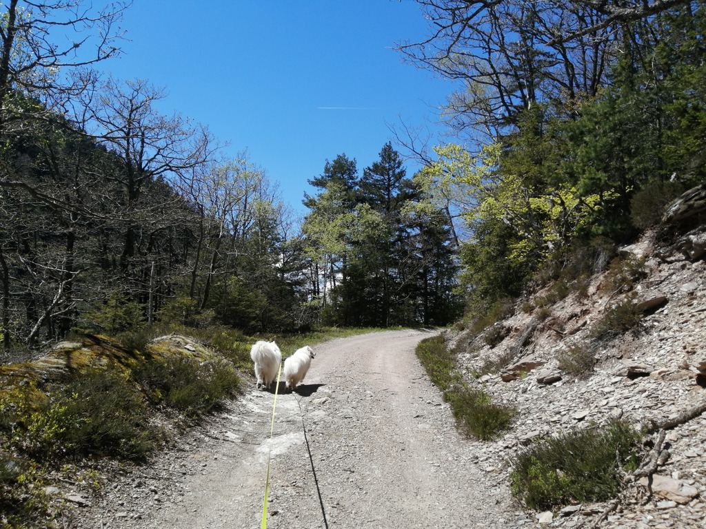 Ciel bleu profond, pierres claires, clameurs d’oiseaux – en l’occurrence d’un rouge-gorge. J’ai pris la piste forestière, qui est large et plane, au lieu du sentier des crêtes, car je n’aspire à rien d’autre qu’à une promenade paisible et printanière encore.