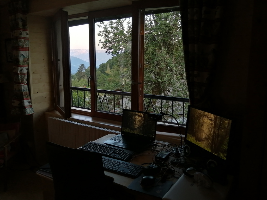 Assis à mon bureau entre les livres et l’arbre devant le paysage de ma vallée, j’ai conscience de vivre aujourd’hui dans le rêve de celui que je fus, si bien qu’il m’arrive par instants d’éprouver la sensation troublante de n’être moi-même que la projection de cet autre « moi » qui existe quelque part en amont, en retrait, en ma prime jeunesse peut-être. Depuis ce poste de guet où je me tiens embusqué derrière mes claviers, mes carnets, mes moniteurs, mes computers, je contrôle les nuages, arrêtés par mes soins à l’horizon que barre la ligne pâle de la Chartreuse, je module l’intensité de la lumière et des couleurs que je peux d’une pression du doigt augmenter ou diminuer sur le triple écran de la fenêtre, je fais à volonté aller et venir les songeries, les fantasmes, les attentes, je contrôle, ou je suis moi-même contrôlé par ce grand fatras du grand tout qui me dépasse, qui me fait sa chose, son objet d’expérience et d’étude, comment savoir ?
