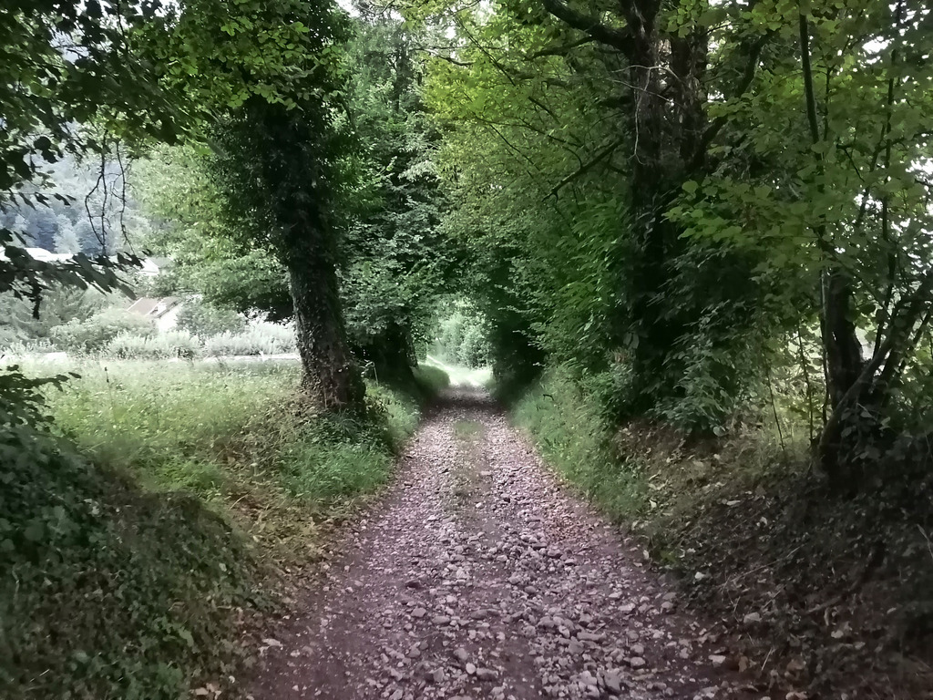 « La montagne est obscure, à des années-lumière… » En surplomb, dans l’œil du héron gris qui tourne au-dessus de la gouille, je nous regarde passer, avec Rimski et Nouchka derrière moi ; et puis en une pirouette bien maîtrisée, je réintègre ma tête et considère le tunnel de verdure qui s’ouvre devant nous, les veaux dans l’herbe rase, Belledonne coiffée de nuages anthracite ou le chat qui détale. Meuglements rauques, cris des geais, à sept heures les lampes sont allumées dans les cuisines où des silhouettes solitaires s’affairent. Quelques bogues vertes ont roulé sur le chemin. Les chiens m’escortent jusqu’à la lisière, puis je leur dis : « Allez ! », et ils reprennent leur cavalcade.