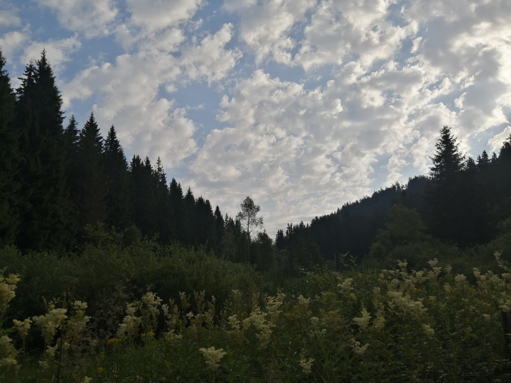 À sept heures on part chercher un peu de fraîcheur sur le chemin clair des sources du Gelon. Rares nuages épars dans le ciel limpide. Le clocher qui sonne au loin, le rire prolongé du pic, l’odeur des pins et la pénombre du sous-bois côté du ravin incitent à la détente : celle de l’humain en vacances, celle du chevreuil qui le sent venir et détale (c’est une heure de grande activité pour les bêtes), et celle des chiens qui veulent le courser.