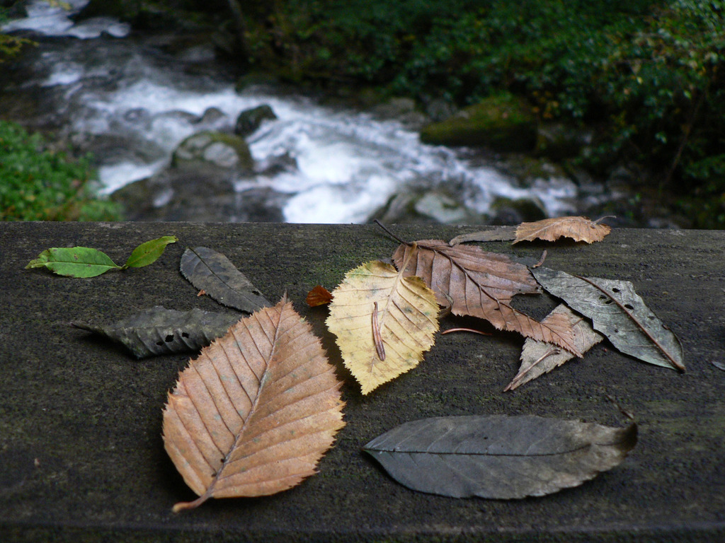 Traversant lentement cette fois la passerelle glissante, je découvre le long de la rambarde une très touchante exposition de feuilles mortes dont le souffle du torrent en contrebas est susceptible à tout moment de chambouler l’éphémère beauté. La longue ligne sombre du chemin boueux qui défile devant moi me fait plonger dans des songeries de cachalot, pendant trente mètres peut-être l’image de ces prodigieux animaux capables d’émettre le son le plus puissant du monde animal, de plonger à des profondeurs abyssales en apnée pendant plus d’une heure, qui peuplaient naguère les océans par centaines de milliers et qu’on a menés au bord de l’extinction pour en soutirer de la graisse et de l’huile, occulte la promenade ; puis le cri d’un geai me ramène au présent.