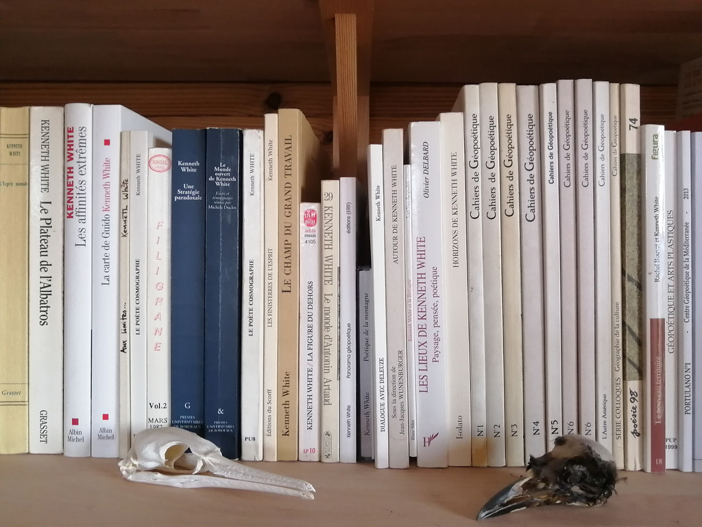 Lisant et relisant – avec une fébrilité que je n’avais pas connue depuis longtemps – Baptiste Morizot, Vinciane Despret, Thom van Dooren et bien d’autres, j’ai le sentiment troublant que cet espace géopoétique naguère nommé et balisé par Kenneth White, qui m’a tant stimulé il y a trente ans mais dont l’audacieuse tentative d’ouvrir « un nouvel espace culturel » s’est peu à peu perdue dans le brouhaha brouillardeux de l’époque, a continué à émerger à travers ces autres œuvres qui font joyeusement tomber les frontières entre les disciplines (philosophie, écologie, histoire, éthologie, ethnologie…), les genres (essai, fiction, poésie, « écobiographie »…) et les mondes (humains, animaux, végétaux – mêmes les montagnes et les rivières se mettent à danser sous les plumes de Morizot ou d’Olivier Remaud…).