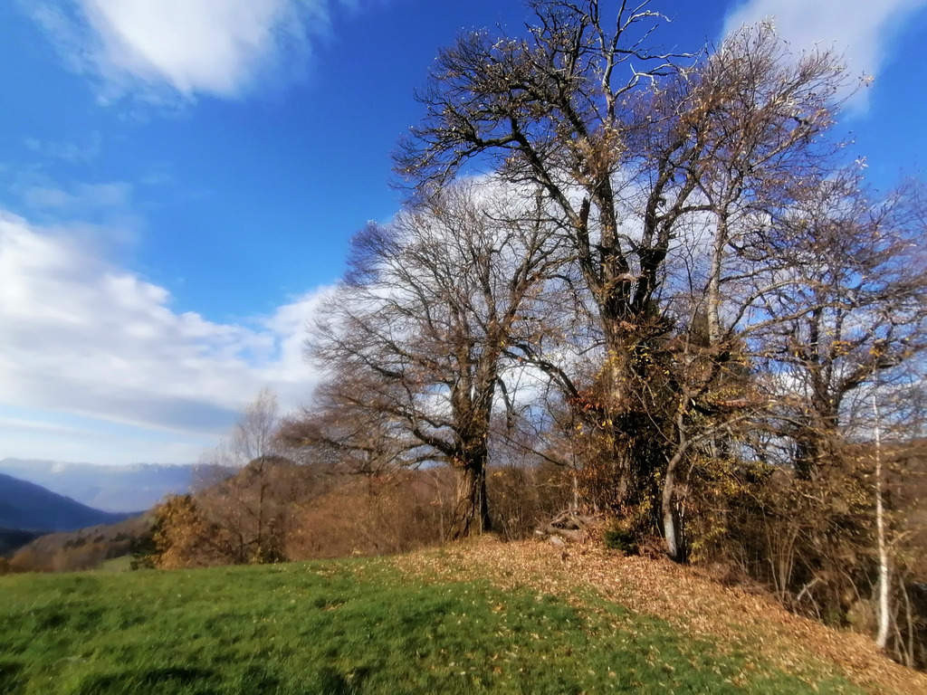 La lumière impitoyable de mars pénètre le bois à travers les feuillages dénudés. Je me demande si le grand châtaignier et le petit chêne en lisière s’inquiètent de la probable multiplication des parasites. Cherchant à éviter une silhouette humaine occupée à tronçonner les branches, je m’égare dans les broussailles, que je franchis à quatre pattes, débouchant enfin sur les hauteurs de La Martinette en plein soleil.