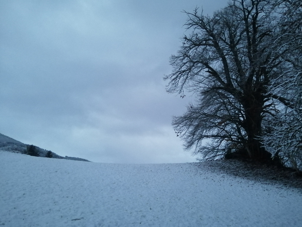 Il y a ici peu de dégâts, quelques arbres arrachés, quelques arbres tombés, une fine couche de neige et de glace qui recouvre à nouveau les champs. Même cette nuit, les trois blaireaux de la taissonnière sont sortis. Avant que l’orage n’explose il faisait 15° et ils jouaient vraiment comme des chats à se poursuivre, à se mordiller, à se marquer les uns les autres en frottant leurs pattes et leurs postérieurs. La renarde est revenue renifler leur terrier, comme d’habitude.