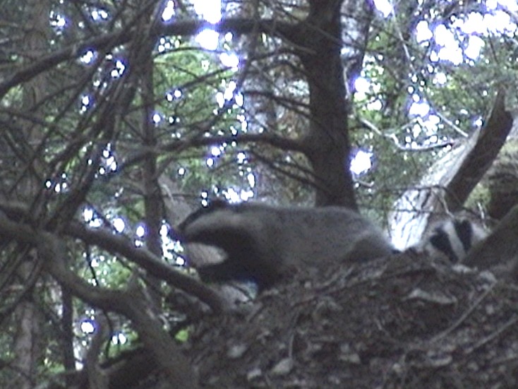 Un peu avant huit heures, le petit éclat gris clair d’une échine enfin me rassure. Les blaireautins comme des grands (mais avec moins de prudence tant la hâte de sortir semble les tenailler) retroussent le museau pour humer alentour avant de se risquer plus loin. Les voici de nouveau qui s’attrapent, se mordillent, roulent l’un sur l’autre jusque dans le terrier.