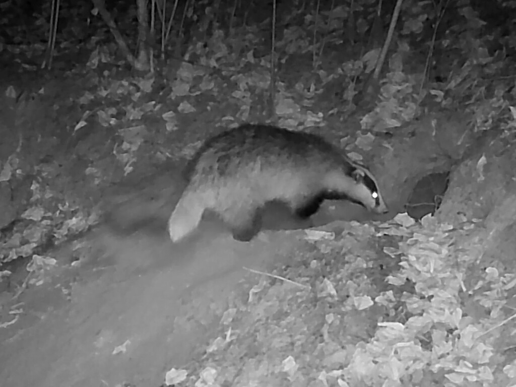 23h26, son derrière apparaît à l’entrée puis tout son corps à nouveau se soulève en vague par le milieu si fort que même ses pattes arrière un instant paraissent quitter le sol : que tous ceux qui disent que le blaireau est pataud décidément la regardent, elle qui à l’instar des autres mustélidés est avant tout puissance et souplesse – toutes qualités qui, ici, ne sont pas mises au service du meurtre mais de la construction !