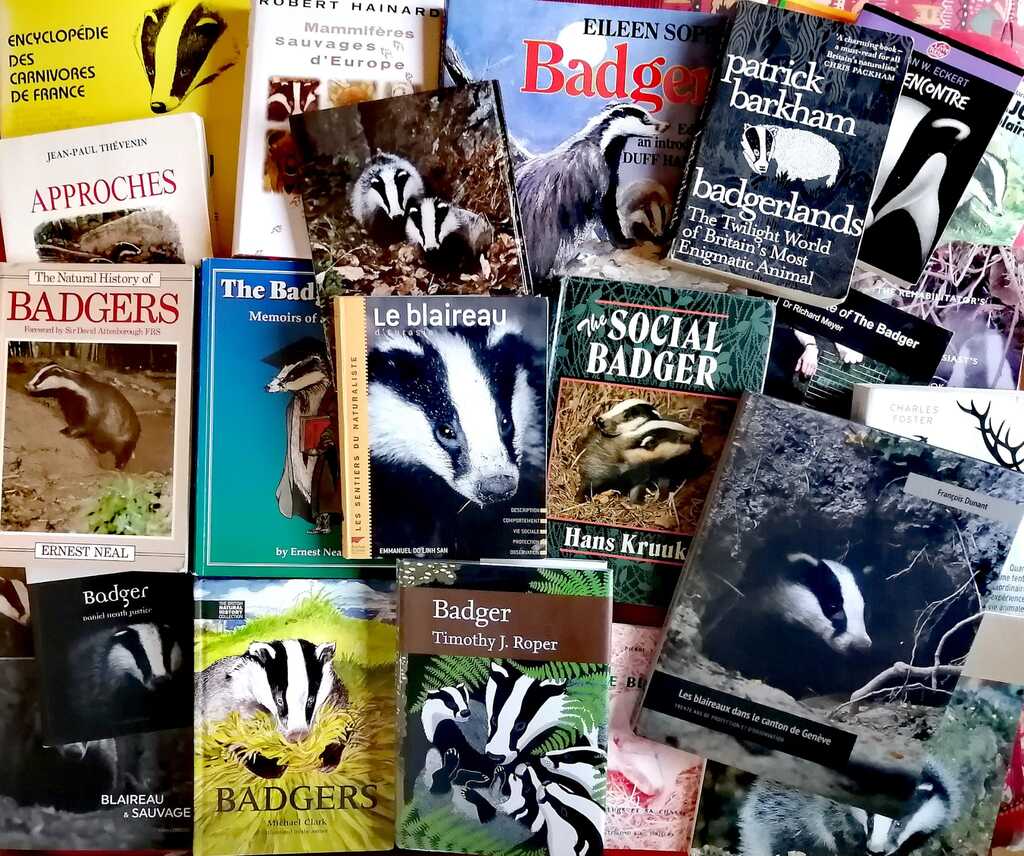 Dunant François, Les blaireaux dans le canton de Genève, Genève, Pro Natura, 2017 (disponible auprès de Pro Natura). Le Blaireau fait partie des espèces qui font des dégâts… mais il est étudié dans ce canton depuis 1942 et protégé depuis 1973 « en vertu des services rendus à l’agriculture ». Au long des 178 pages, F. Dunant nous livre les résultats de ces 30 ans de suivi, dont un remarquable travail sur les terriers, plein de données sur la biologie de l’espèce et un chapitre intéressant et plus qu’instructif sur les relations Blaireaux et Homme. Non seulement il donne des informations précises sur les « faits » de « dégâts », mais aussi une marche à suivre pour une bonne collaboration avec les agriculteurs, propriétaires et autres.