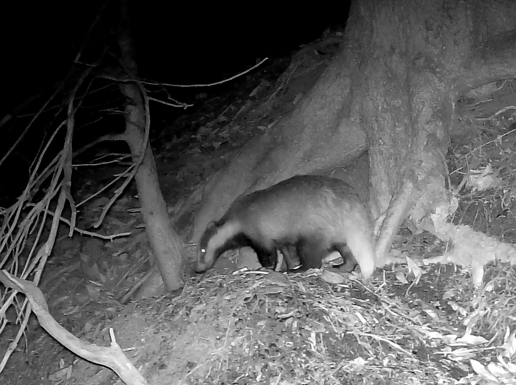 J’ai placé un caméra dans le grand jardin d’Élodie qui jouxte ma maison, juste devant l’une des entrées qu’elle a aménagées pour permettre le passage de la faune, à l’exception des cervidés et sangliers qui auraient tôt fait de tout dévaster. Dans la nuit, une bête est venue qui a retourné la terre à l’endroit qu’elle venait elle-même de travailler, et mis à terre un plant de maïs. Serait-ce un blaireau ? J’accours aussitôt, plein d’espoir, et reste dubitatif. On ne trouve aucune trace griffue, et le sol a été retourné de façon circulaire, ce qui évoque davantage le travail d’un sanglier que d’un blaireau. Devant la caméra, la petite entrée censée permettre le passage a été forcée, ce qui laisse peu de doute et que confirme aussitôt les images. Le petit sanglier qui est entré par une autre ouverture pareillement forcée est sorti par ici, un renard est passé également mais aucun blaireau. Élodie s’empresse de réparer pendant que je travaille moi-même à ma clôture, qu’il faut rehausser parce que Rimski hier soir a réussi à la franchir pour venir nous rejoindre au jardin.