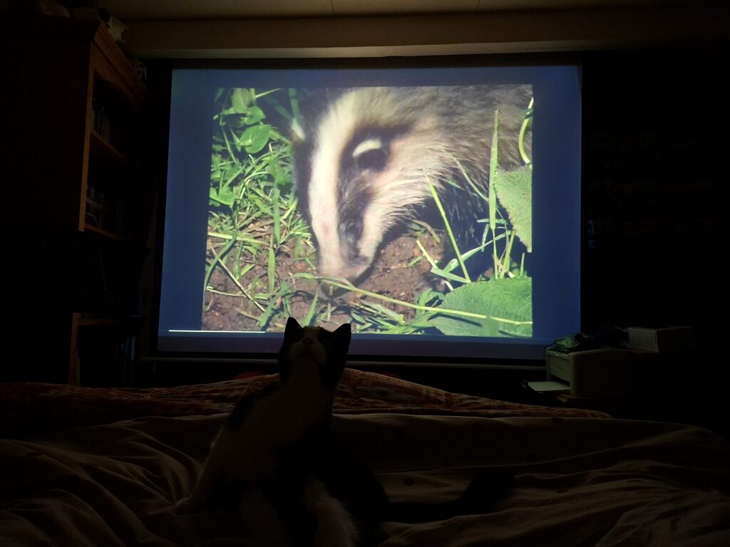 Très confortablement installé devant le grand écran de ma chambre-bureau-bibliothèque en compagnie ce soir du chat Musique (les deux autres et les chiens dorment dans une autre partie du terrier), je visionne Le terrassier de la nuit de Robert Luques, documentaire qui, assez curieusement, m’avait échappé, alors qu’il est le seul à être disponible en français sous forme de DVD commercialisé depuis 2004 dans une collection qui s’intéresse à la faune ordinaire (seul le volume consacré au chat forestier est indisponible, si ce n’est auprès de l’auteur Loïc Coat qui doit m’envoyer une copie).