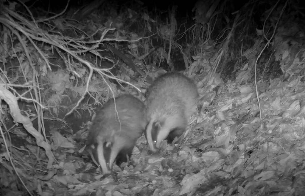 J’allume enfin l’ordinateur pour monter le film de la nuit. La séquence de la gueule 23 s’y intègre aisément : ces visiteurs qui en sortent ne sont autres que Courage et Prudence, qui ont quitté le terrier principal à 20 heures, se sont attardés devant la gueule 20 puis sont passés à la 23 à 20h45 faire un peu de nettoyage, comme on va à la cave vérifier les bouteilles ou dans la cabane de jardin chercher un vieil outil. Le mystère n’est pas tout à fait levé pour autant, car on les voit sortir de ce nid douillet manifestement rempli de feuilles sèches parmi lesquelles ils fourragent, mais on ne les voit pas entrer, ce pourquoi j’ai d’abord cru qu’ils y avaient passé la nuit ; il faut donc que je retourne sur place trouver la gueule par laquelle ils sont entrés.